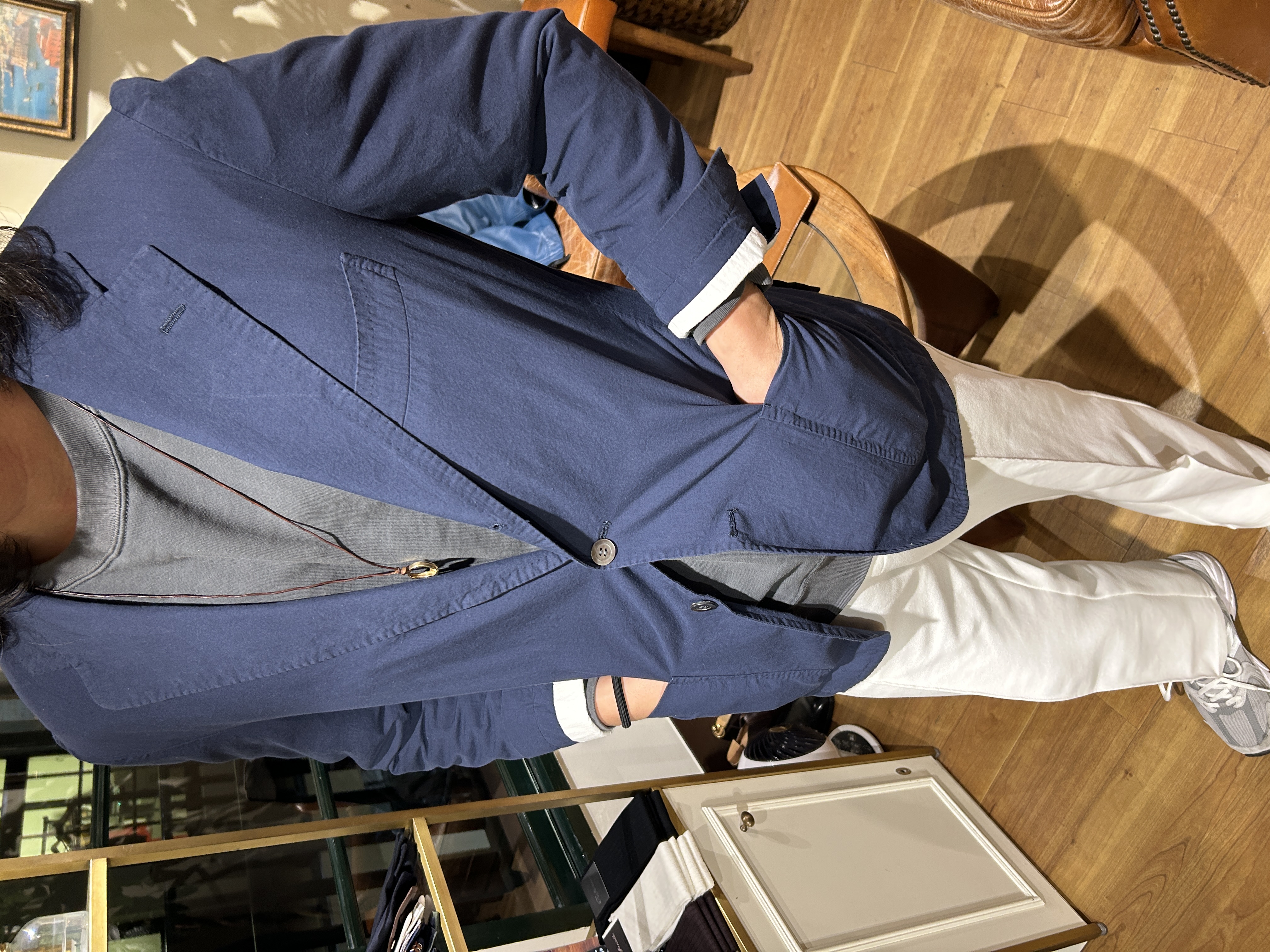 島根県よりお越しのお客様に、ラファニエロ既製品のイチオシ商品『ウォッシュド・コットンスーツをお買い上げ頂きました。